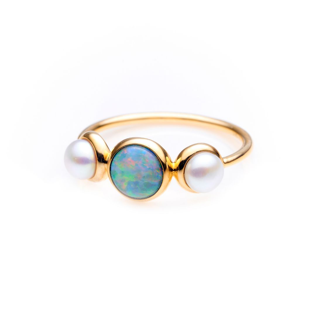 The Azure Waters Ring brings effortless elegance to your everyday look, featuring a luminous light opal that shimmers with soft, ocean-inspired hues, beautifully balanced by two delicate freshwater pearls. Set on your choice of 9ct yellow gold or sterling silver, this refined design is lightweight, comfortable, and perfect for both daily wear and special occasions. Each ring is naturally unique, making it a meaningful gift or a timeless addition to your own collection—subtle, sophisticated, and endlessly wearable.