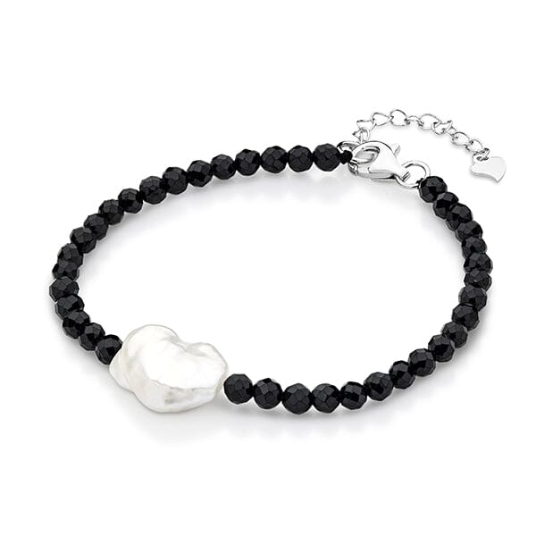 Presenting our Black Spinel & Keshi Bracelet, a blend of subtle luxury showcasing a beautiful 12-15mm pearl that embodies both elegance and uniqueness. Each radiant Keshi pearl, with its irregular and organic shape, captures the essence of nature's artistry. Paired with deep black Spinel beads, the bracelet exudes a timeless sophistication.