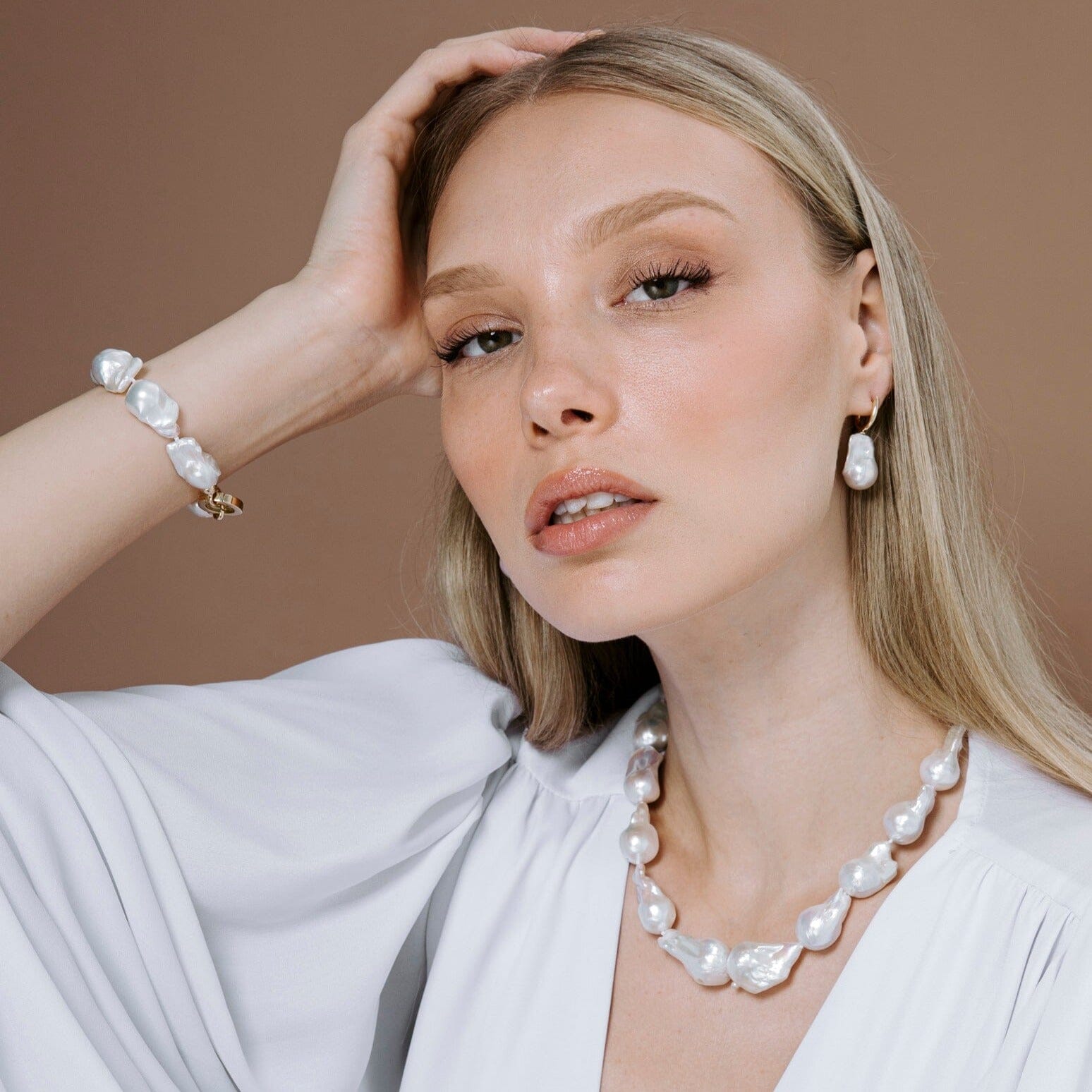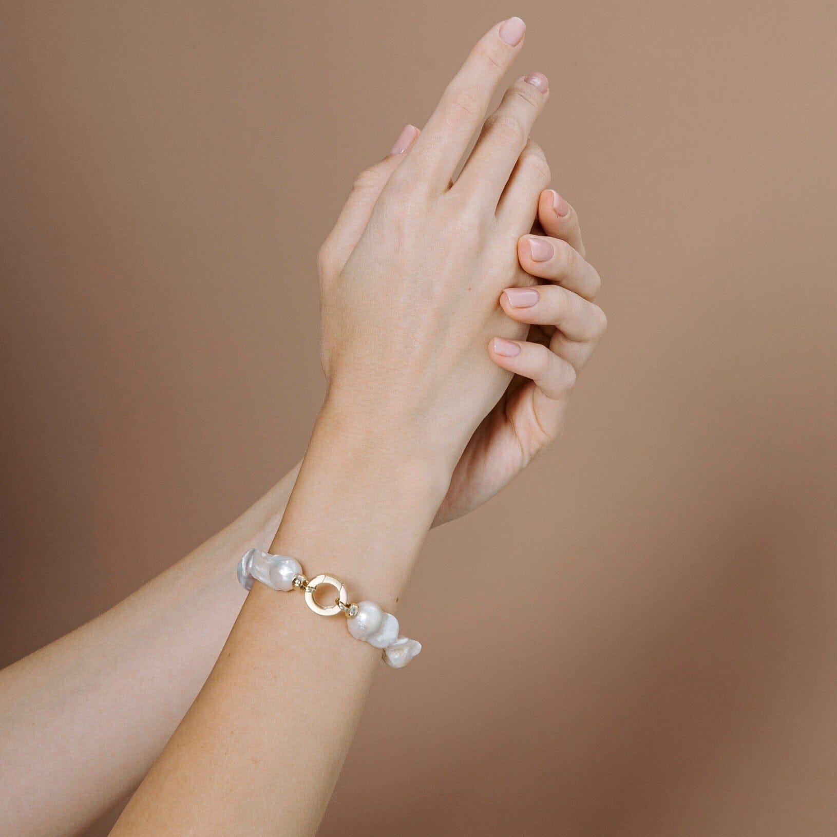 With its one of a kind design, this nucleated baroque bracelet is the perfect way to add texture to any outfit. Fitted with a 9ct Gold clasp, this piece is modest but beautiful and would work well with its matching nucleated necklace for a complete look.