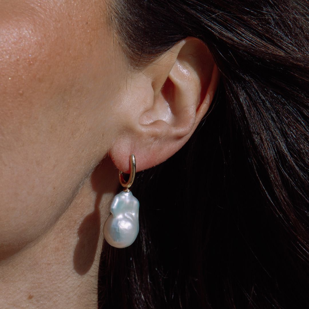 The Alessia Huggies are the perfect finishing touch to a contemporary fit. A gleaming, baroque shape freshwater pearl dangles like a precious nugget from its 9ct yellow gold setting, adding interest to a chic up-do or a touch of class to a simple look. Match with the Pepite D’Or Pendant for ultimate style.