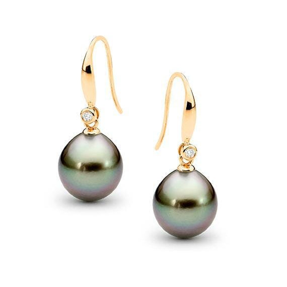 Introducing our Bora Bora Tahitian Earrings, featuring exquisite Tahitian Black Pearls known for their stunning lustre, paired with a 9ct gold hook-style design adorned with a diamond stud, offering a sophisticated and adaptable option for everyday elegance. Explore our Tahitian collection to effortlessly coordinate your look with matching enhancers and bracelets for a captivating and harmonious ensemble.