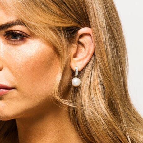 Elevate your style with the Madeline Edison Huggies, featuring a lustrous round Edison pearl suspended from a sleek diamond-encrusted bail. With a double row of sparkling diamonds, these earrings bring just the right touch of sophistication. Available in 9ct Gold, they’re the perfect blend of modern elegance and classic charm—ideal for any outfit or occasion.