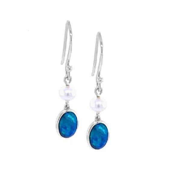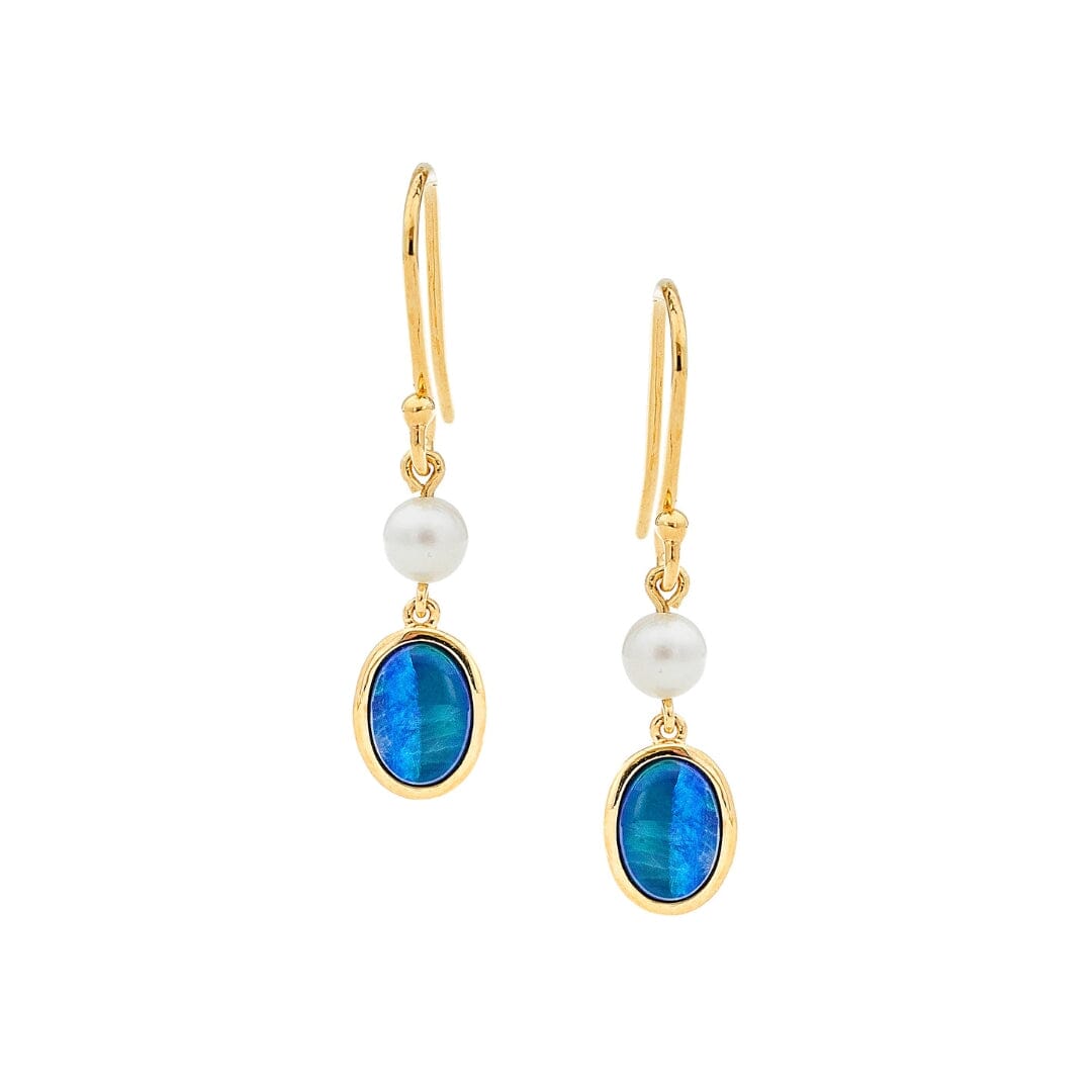 These petite two-drop earrings feature a lustrous freshwater pearl, paired with a suspended oval-shaped light opal, creating a delicate and refined design. The opal's vibrant hues beautifully complement the pearl's natural lustre, making them an elegant yet understated statement piece. Set in your choice of 9ct gold or sterling silver, they are perfect for adding a touch of sophistication to any look, day or evening.