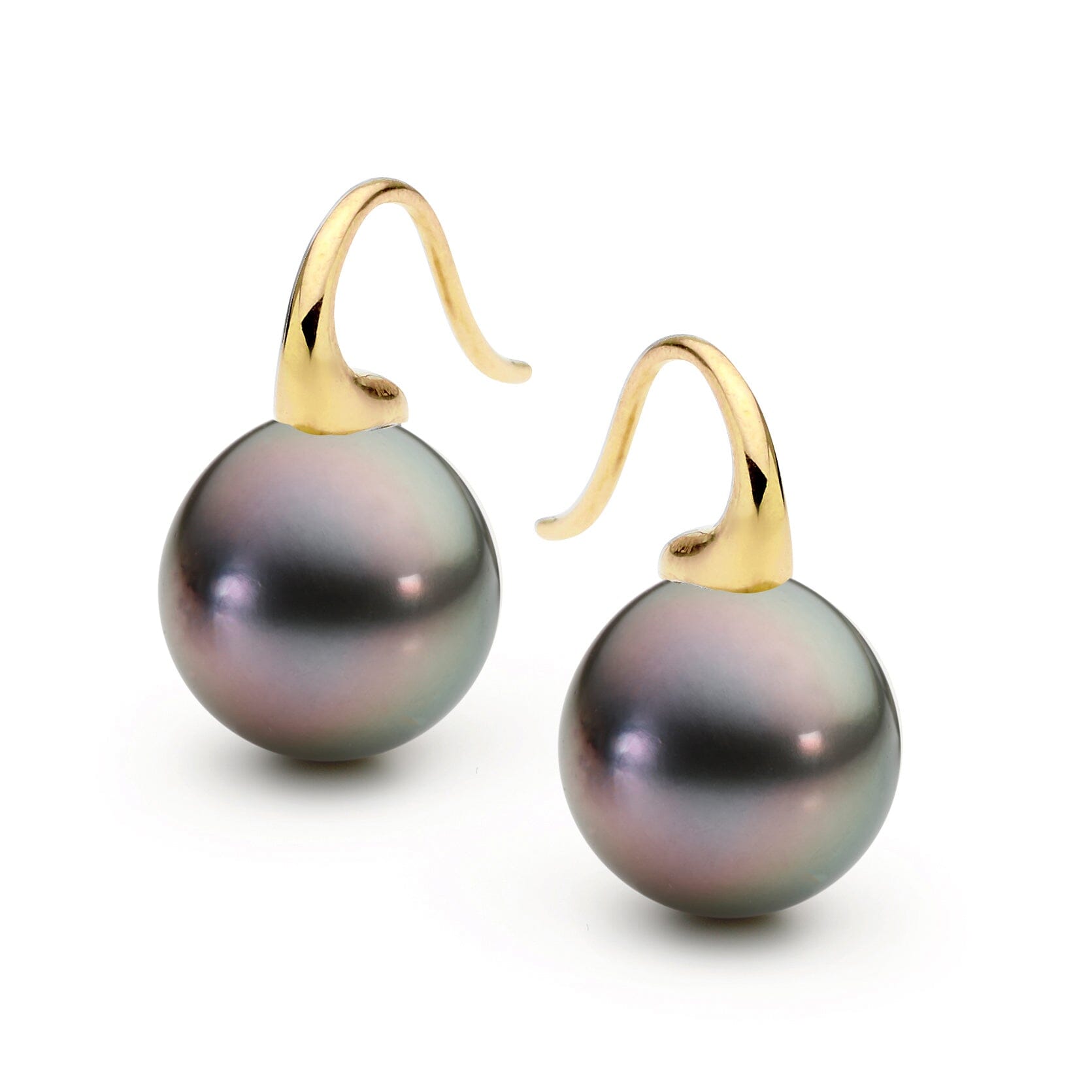 Elevate your look with the Prudence Tahitian Earrings, featuring exquisite natural Tahitian pearls sourced from the pristine waters of French Polynesia. These round pearls, renowned for their rich, exotic hues and luminous lustre, are elegantly suspended from a sleek shepherd hook design with a refined ball finish. A true blend of sophistication and timeless charm, these earrings are the perfect statement of luxury.