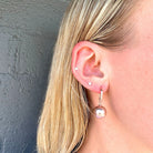 Introducing the Twilight Luminescence Earrings- a pair of elegant sterling silver hook earrings adorned with a lustrous round freshwater Edison pearl, beautifully enhanced by a vertical row of sparkling cubic zirconia's above, creating a captivating sense of twilight-inspired elegance.