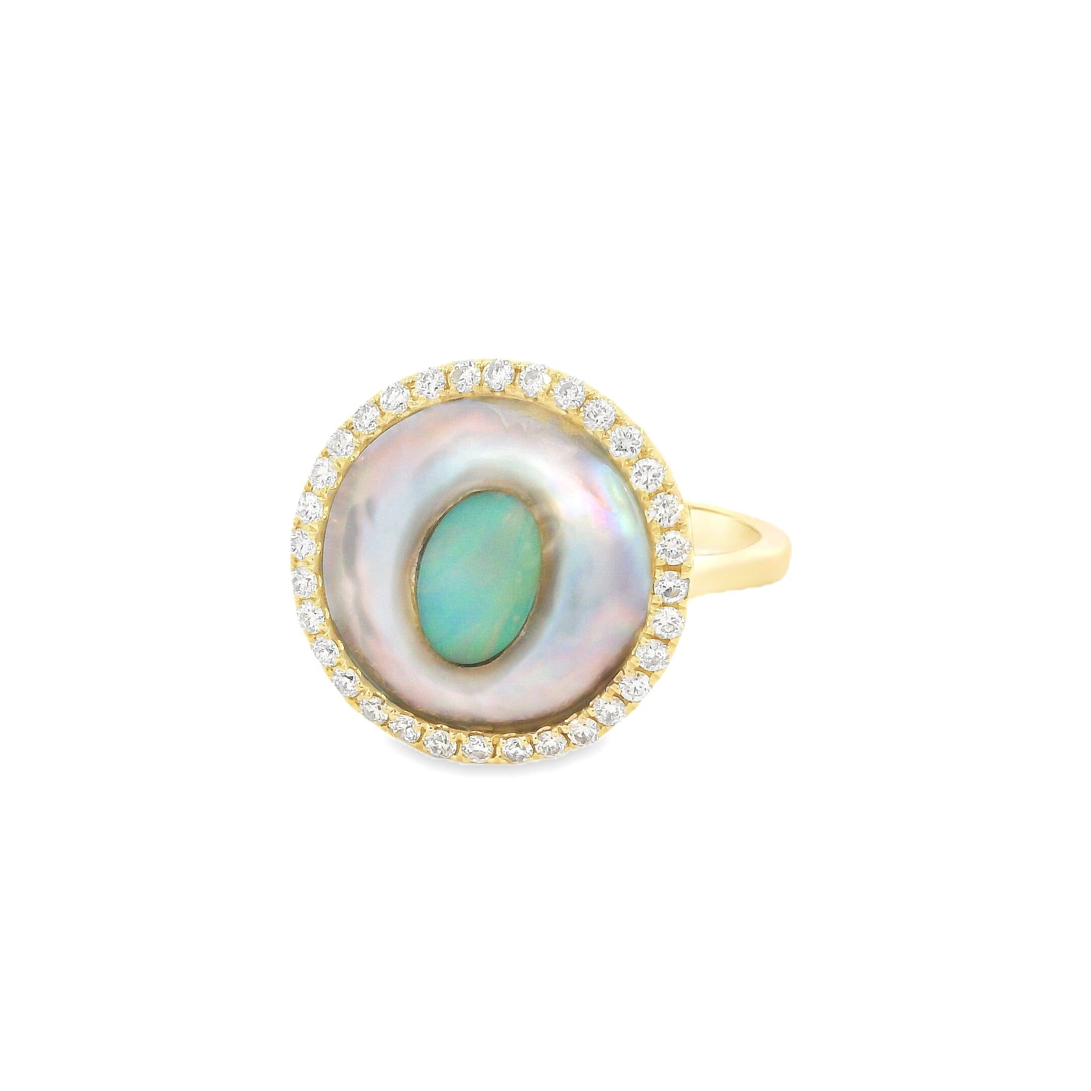Discover this stunning piece from the Earth+Ocean Jewellery collection, featuring a unique Solid Opal and South Sea Mabe Pearl. Each piece showcases a natural fusion of opal encased in nacre layers by a Batwing Oyster, creating a one-of-a-kind treasure. This collection captures the essence of natural beauty, offering exclusive jewellery that seamlessly blends oceanic and earthy elements through a remarkable natural process.