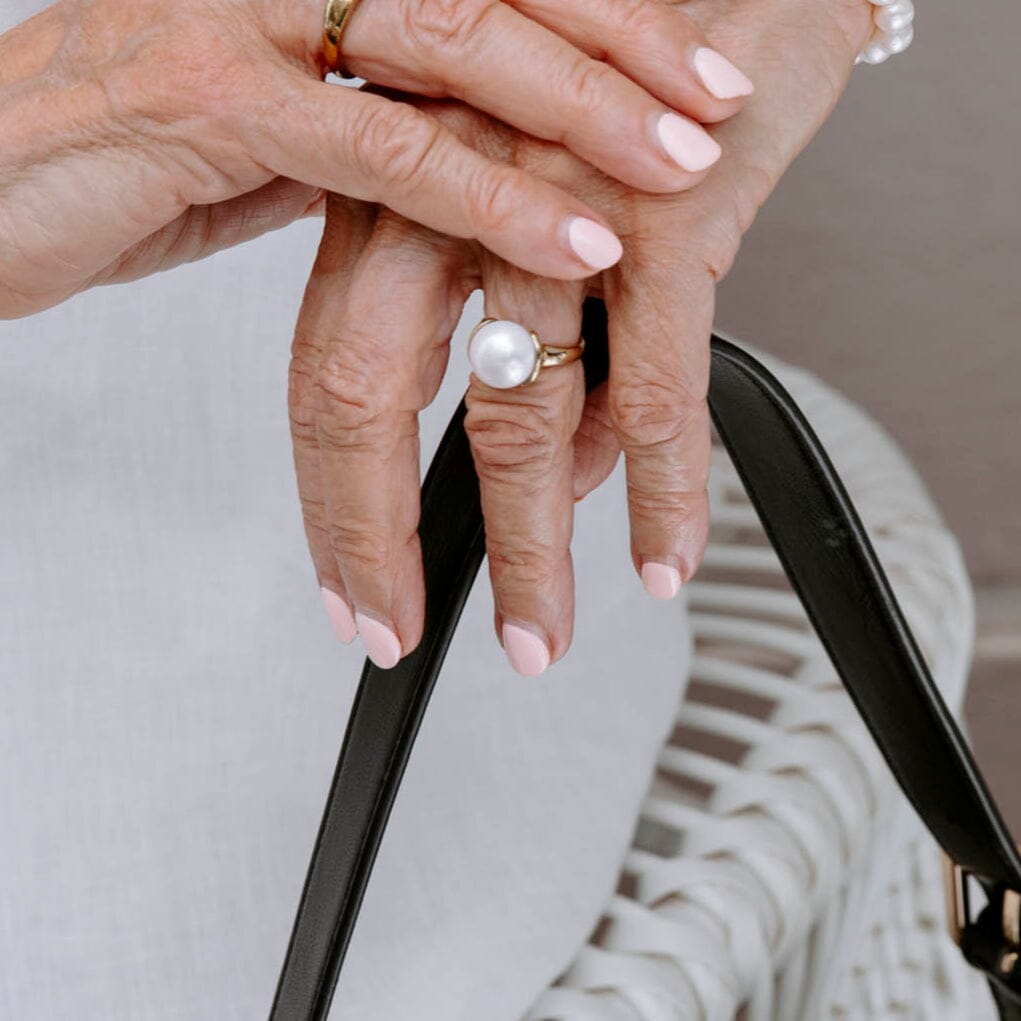 The Odyssey Ring showcases a generous-sized button freshwater pearl, available in natural pink or white. This lustrous pearl is elegantly encased in a cradled setting of 9ct yellow or rose gold. The unique and sophisticated design of the Odyssey Ring makes it a timeless piece, perfect for any occasion. Ideal for both everyday wear and special events, this ring is a stunning testament to refined taste and classic style.