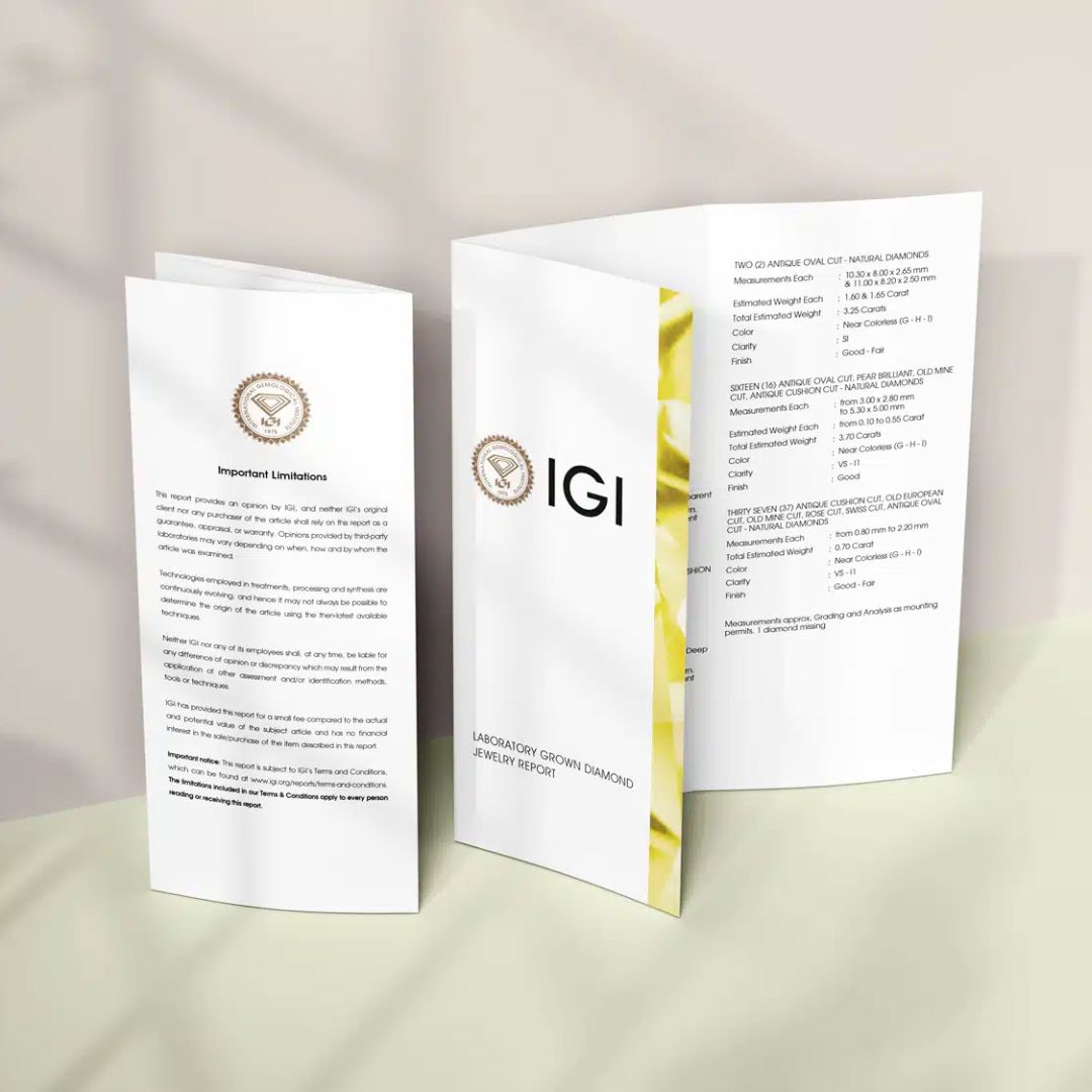 2.  Provenance and Origin: The certificate typically includes essential details about the jewellery, such as its origin, materials used, and the specific design attributes. This information ensures transparency and authenticity in every aspect of the piece's creation.
