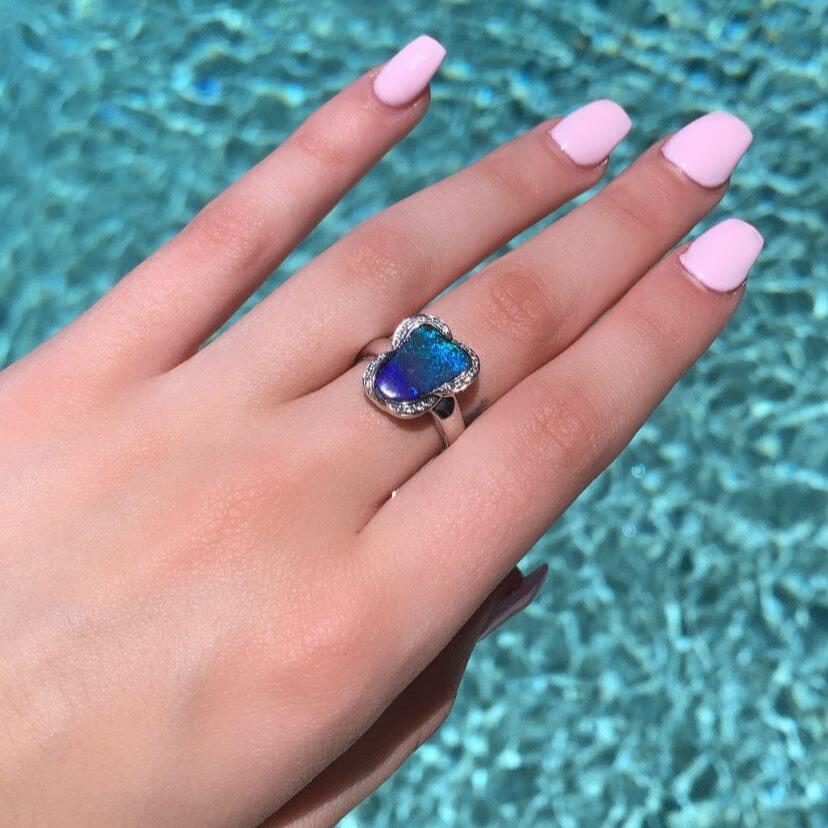 Ink Blue Boulder Opal Ring 007