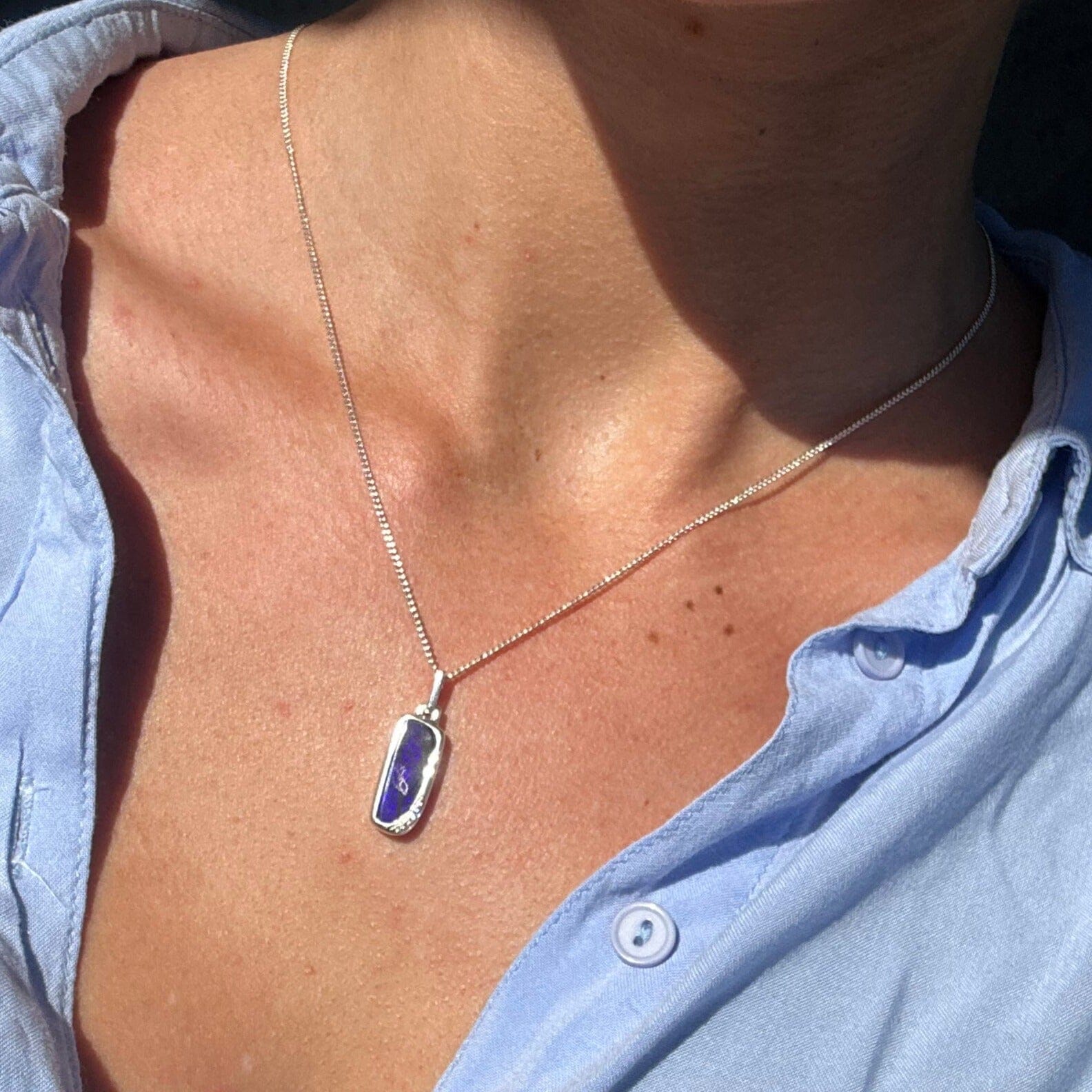 3.22ct Ink Blue Solid Boulder Opal Cubic Zirconia Pendant