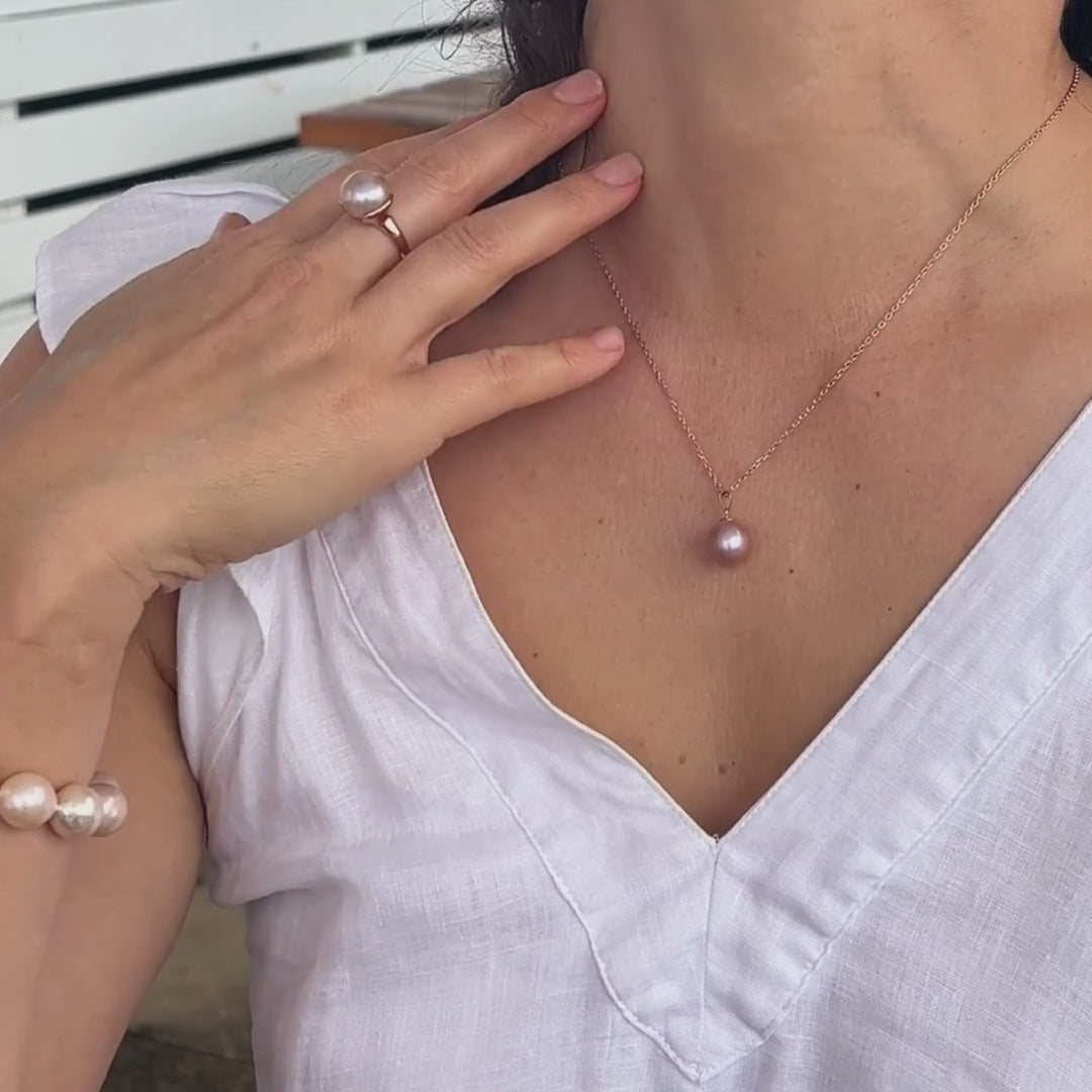 The Raspberry Radiance Pendant brings together soft elegance and artistic craftsmanship in a beautifully balanced design. A natural pink Edison drop pearl glows against the warmth of 9ct rose gold, creating a piece that feels both modern and timeless.