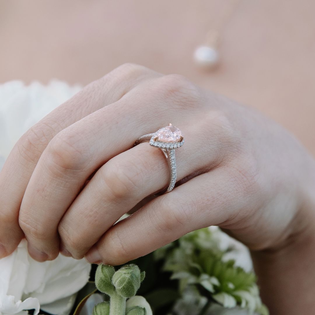 Fancy Pink Teardrop Lab-Grown Diamond Ring 015