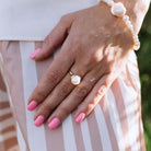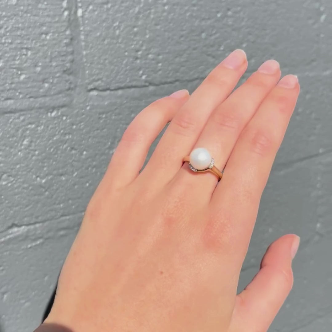 The Inez Ring is a timeless piece crafted, featuring a stunning round freshwater pearl. Delicately accented with sparkling diamonds, this ring embodies elegance and sophistication. Perfect for adding a touch of luxury to any occasion, the Inez Ring is a classic addition to your jewellery collection.