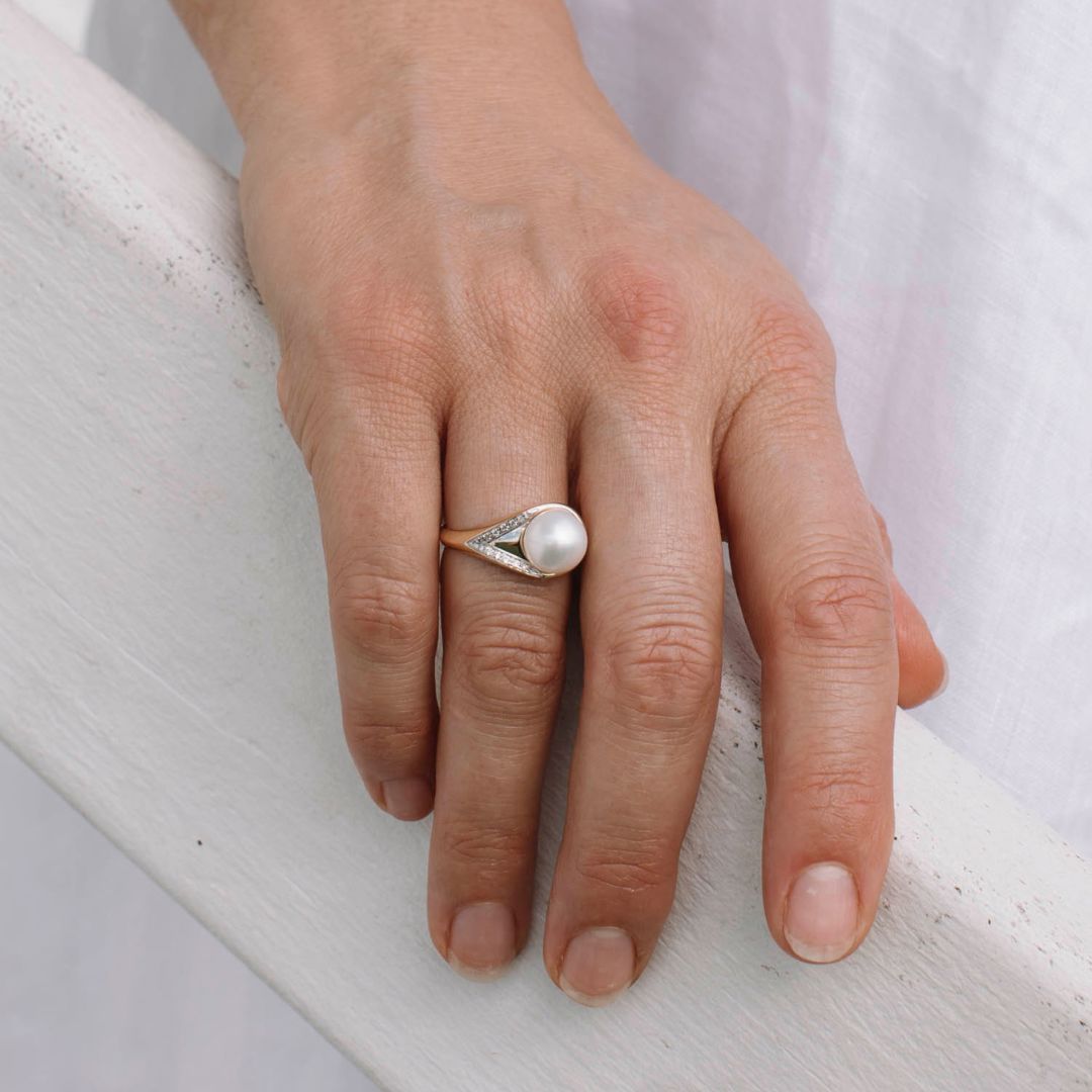 Introducing the Marian Ring – a true embodiment of luxury and glamour. As one of our best sellers, this exquisite ring features a V-shaped trail of sparkling diamonds that gracefully lead to a lustrous round freshwater pearl. The design captures the essence of timeless elegance, making it a standout piece for any collection. Available in 9ct gold, the Relic Diamond Ring is a glamorous statement of sophistication and style.