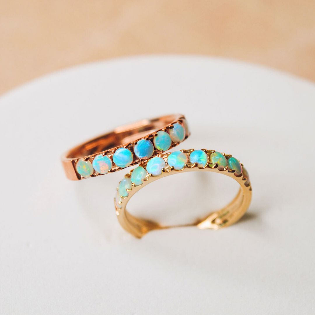 The Milky Way Stacking Ring brings a subtle glow to your everyday style, featuring a fine band set with a delicate row of shimmering Australian light opals. Crafted in your choice of 9ct gold or sterling silver, it captures the ethereal beauty of opal in a modern, understated design. Perfect for stacking or wearing solo, this refined piece adds a touch of celestial charm to any look.