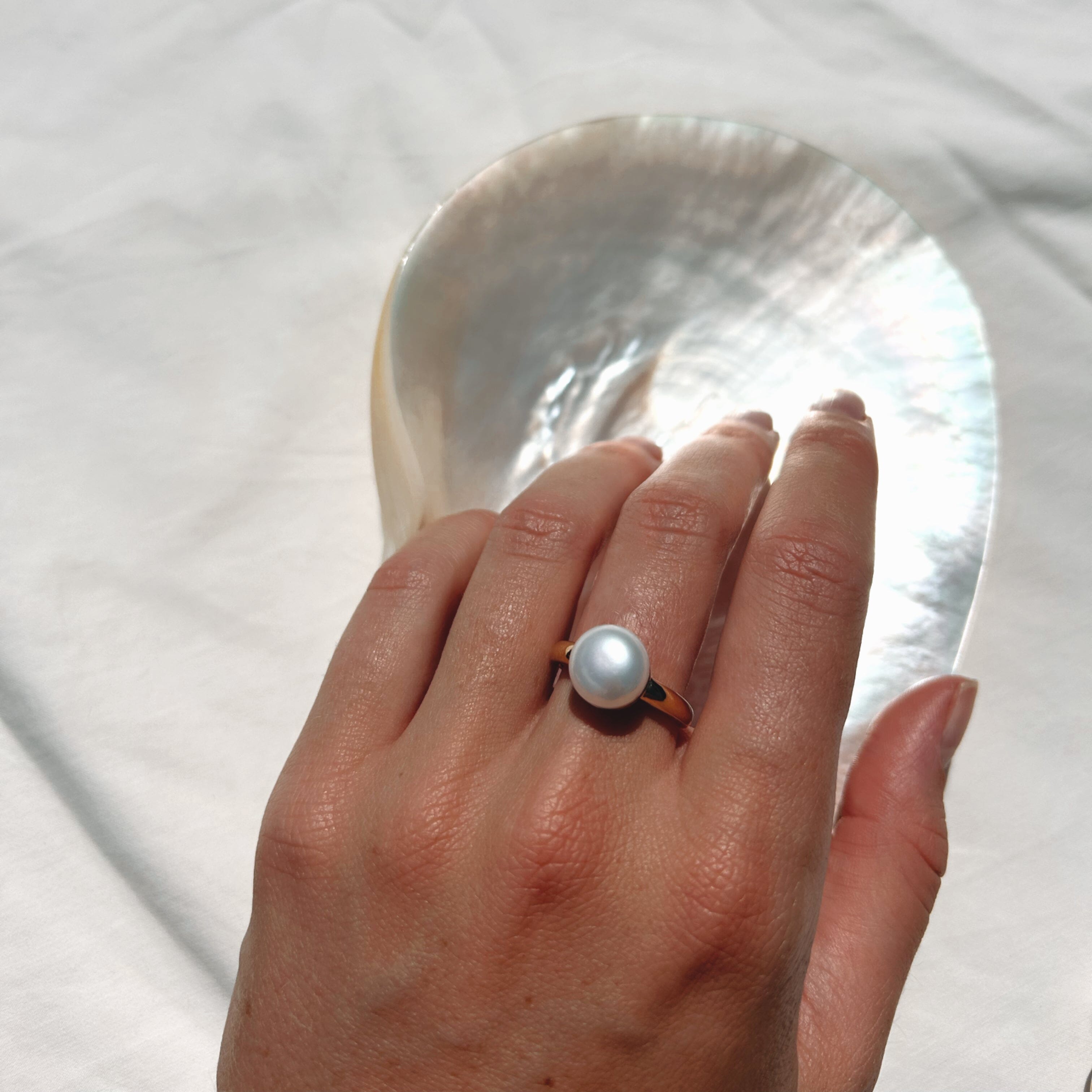 For a simple yet elegant piece that’s perfect for daily wear, the Nyx Ring is a must-have. Featuring a lustrous button Freshwater pearl, its clean, minimalist design makes it effortlessly versatile. Available in Sterling Silver and Yellow Gold, this delicate ring layers beautifully with other pieces or shines on its own for any occasion.
