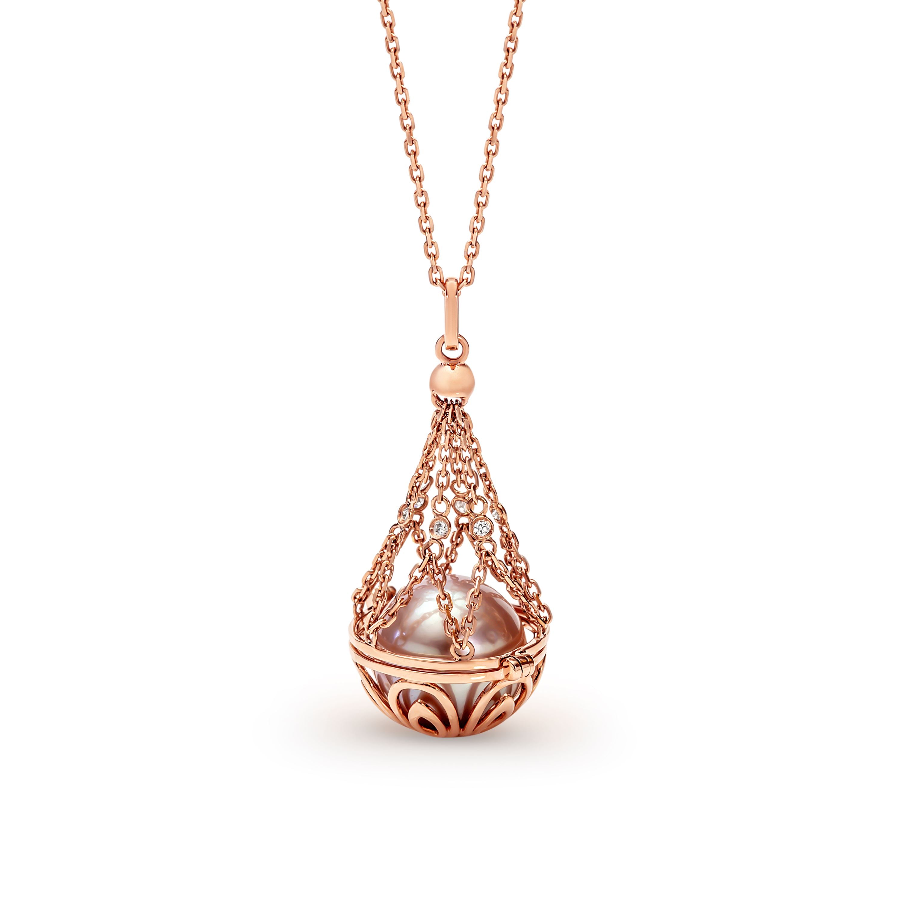 Designed by Erica with intricate detail, the Paris Rose Gold Necklace is a true statement of elegance. Crafted in 14ct Rose Gold, its diamond-encased basket cradles a stunning natural pink Edison pearl, celebrated for its rich colour and radiant lustre. With the option to switch to pearls in different shades, this versatile piece also features three adjustable lengths—50cm, 60cm, and 70cm—allowing you to style it effortlessly for any occasion. A timeless blend of sophistication and modern romance.