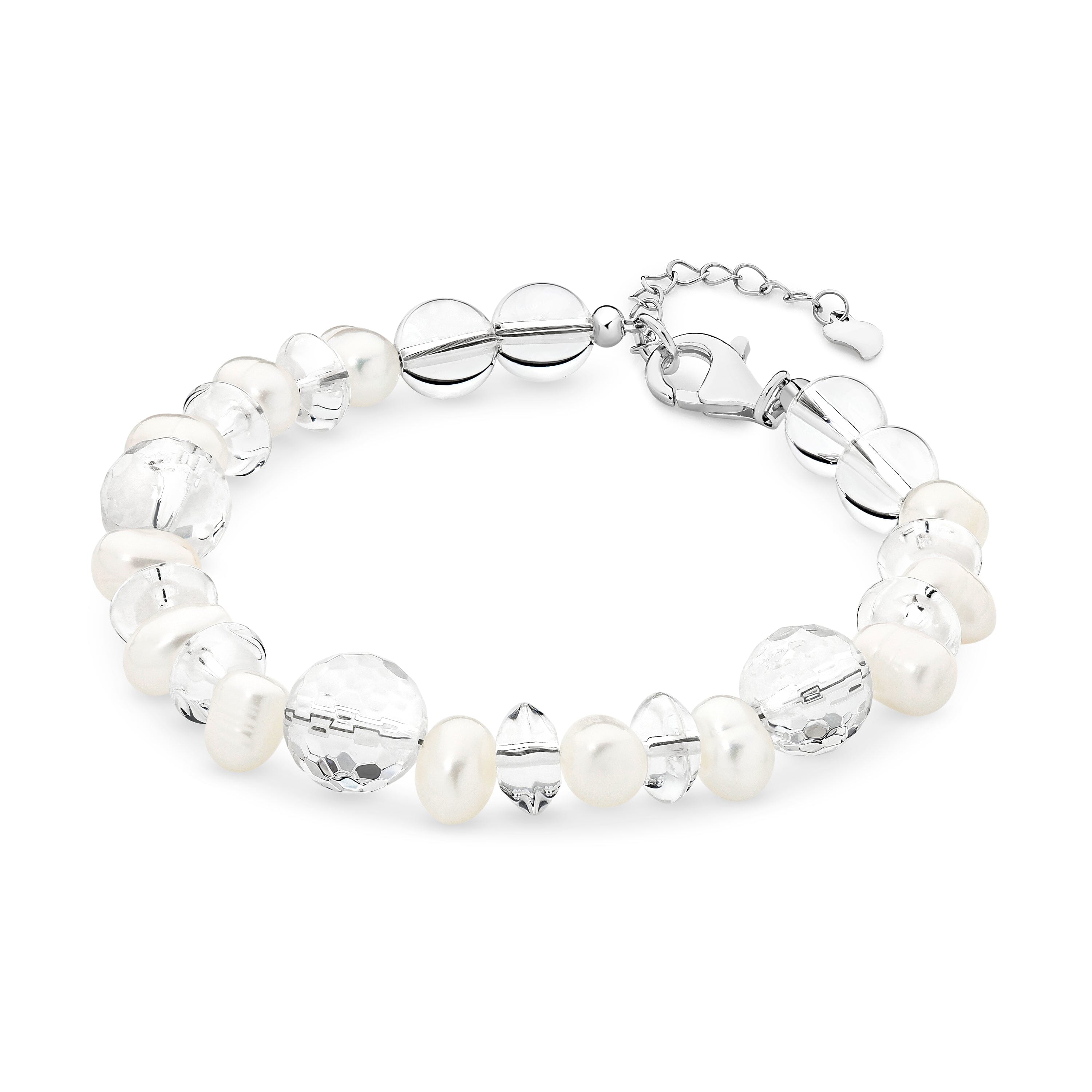 The Verity Bracelet features a stunning combination of clear quartz and oval freshwater pearls, creating a delicate and sophisticated piece. Each clear quartz bead adds a touch of clarity and elegance, while the lustrous oval pearls bring a timeless charm. This versatile bracelet can effortlessly elevate any outfit, making it a perfect addition to your jewellery collection.