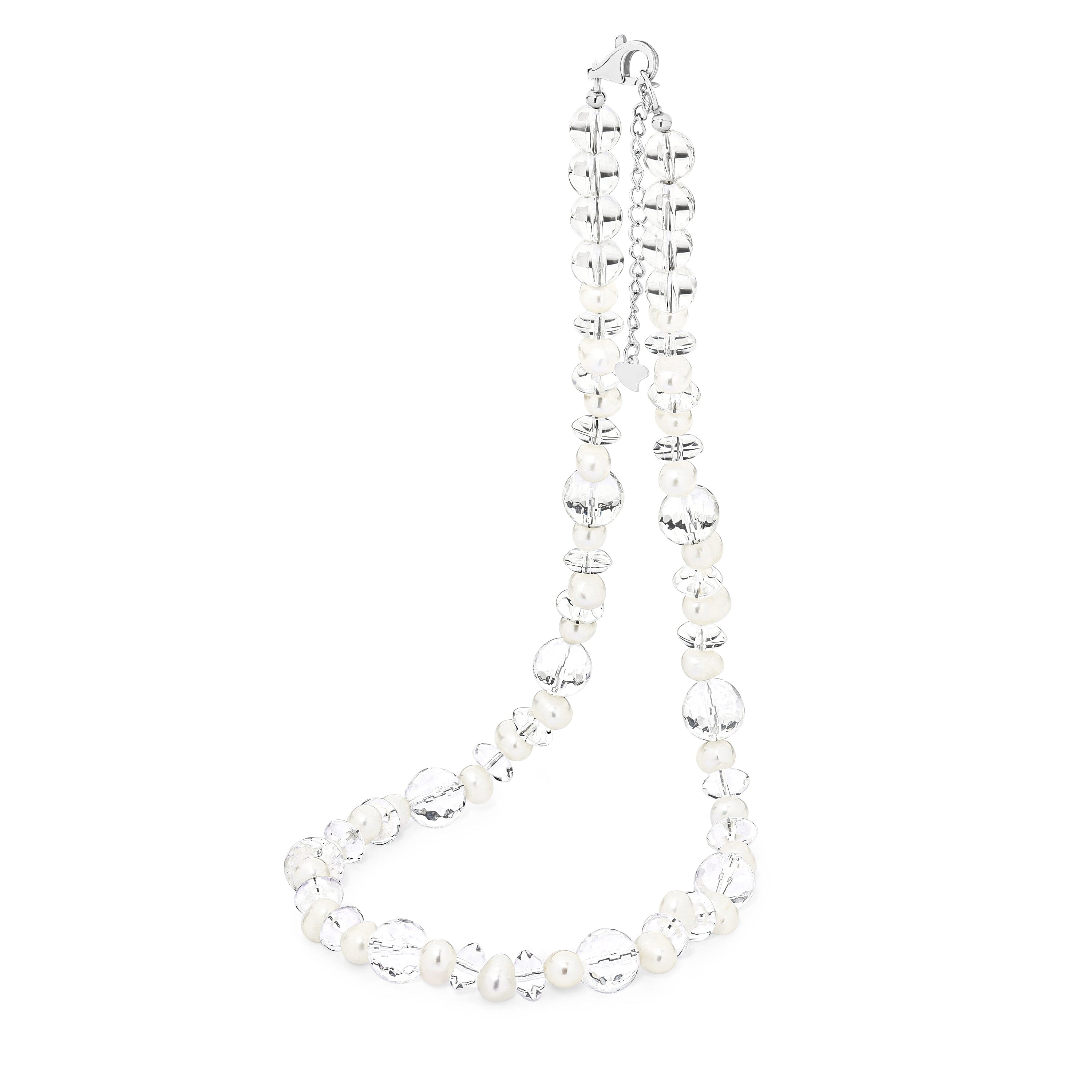 The Verity Necklace features a stunning combination of clear quartz and oval freshwater pearls, creating a delicate and sophisticated piece. Each clear quartz bead adds a touch of clarity and elegance, while the lustrous oval pearls bring a timeless charm. This versatile necklace can effortlessly elevate any outfit, making it a perfect addition to your jewellery collection.