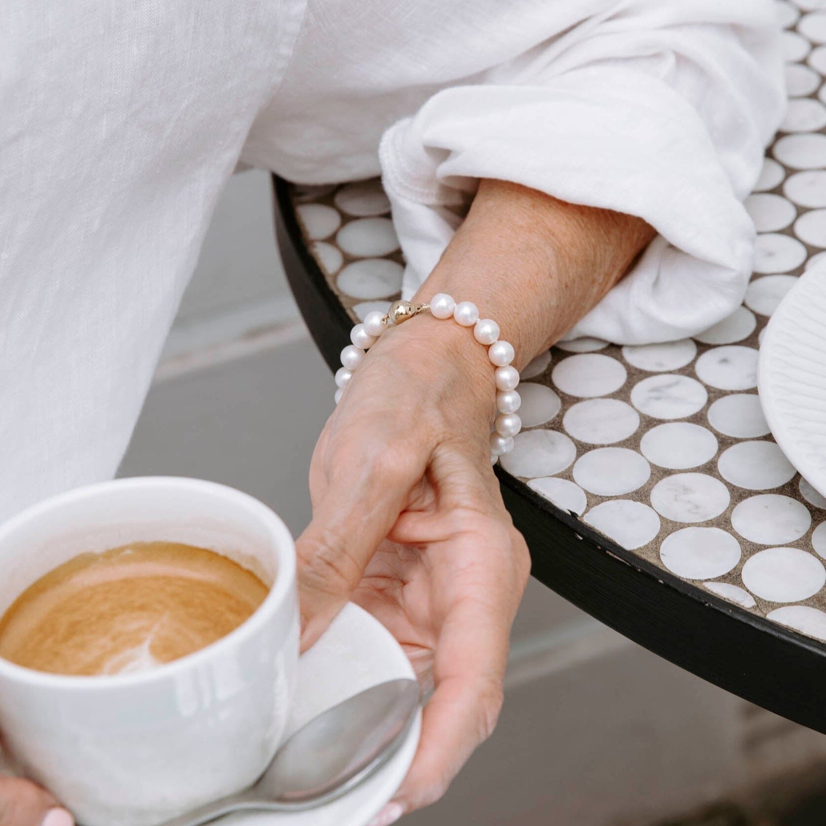 Indulge in elegance with the Clara Bracelet featuring Freshwater pears and a luxurious 9ct Yellow Gold clasp. A timeless favourite, each piece is meticulously hand-knotted to guarantee excellence and allure. Available in a range of sizes and colours, it's the perfect accessory for any occasion.
