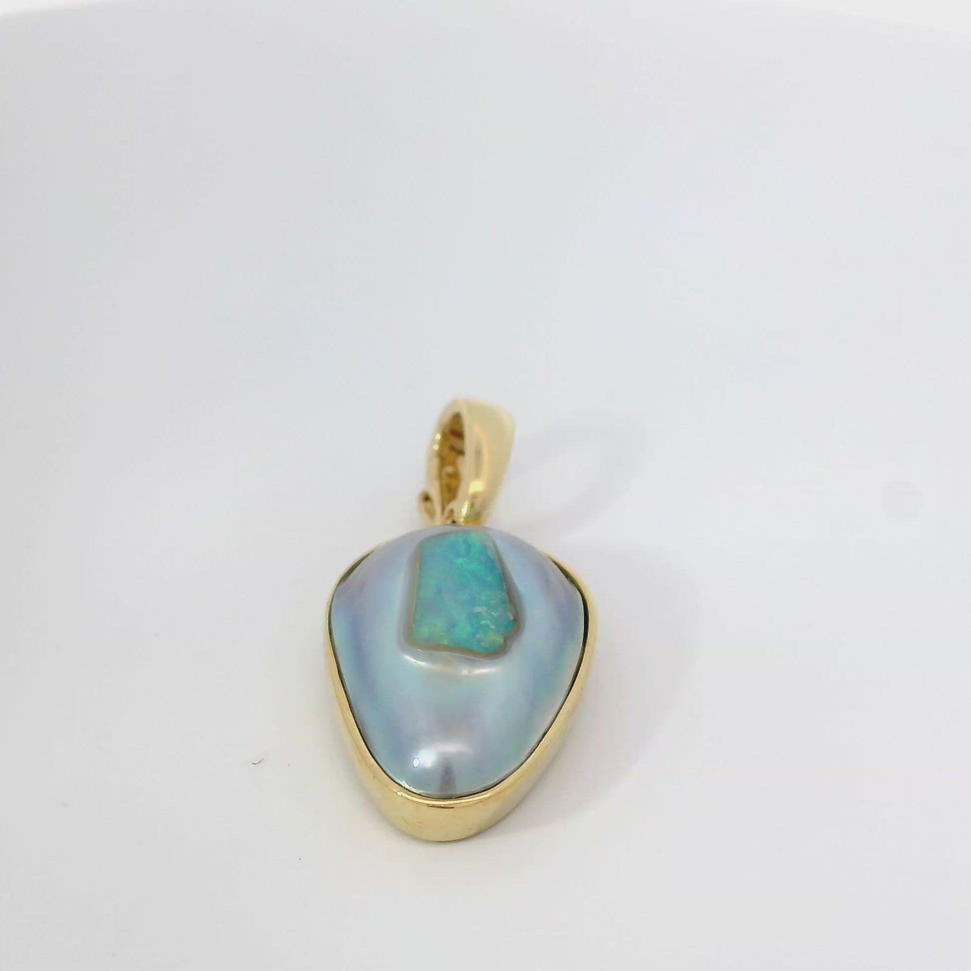 Discover this stunning piece from the Earth+Ocean Jewellery collection, featuring a unique Solid Opal and South Sea Mabe Pearl. Each piece showcases a natural fusion of opal encased in nacre layers by a Batwing Oyster, creating a one-of-a-kind treasure. This collection captures the essence of natural beauty, offering exclusive jewellery that seamlessly blends oceanic and earthy elements through a remarkable natural process.