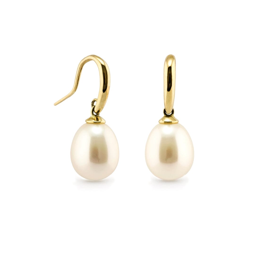 The Faye Earrings embody classic elegance with their lustrous white freshwater drop pearls set in exquisite 9ct yellow gold. Designed with a shepherd hook fitting for a comfortable  fit, these earrings effortlessly elevate any outfit, whether for daily wear or special occasions. Perfect for those who appreciate classic sophistication and versatility, the Faye Earrings make a stunning addition to any jewellery collection.
