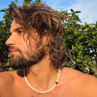The Harry Necklace, a favoured choice among men, combines the timeless elegance of white freshwater pearls and the bold presence of the Bronzite feature bead exudes elegance and masculinity. Its secure stainless steel magnetic clasp ensures both style and convenience in one accessory.