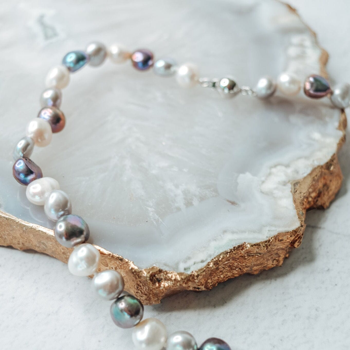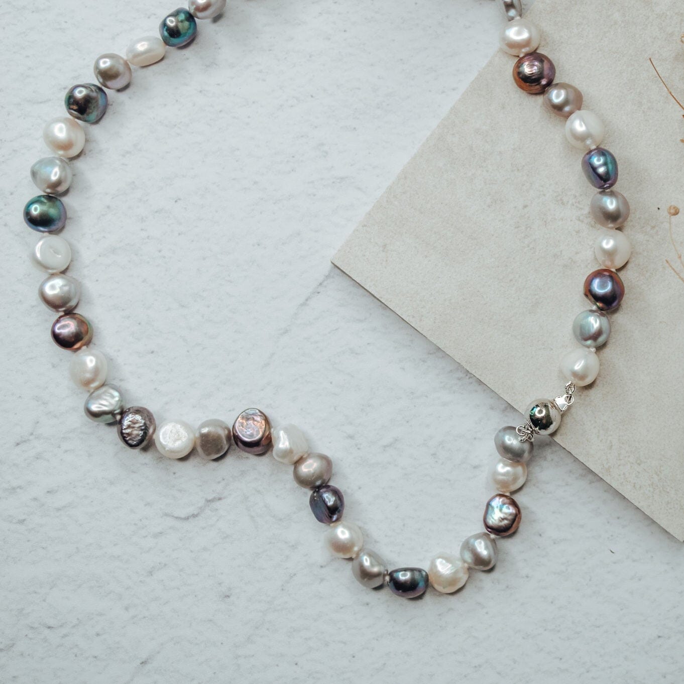 Make a statement with the Monochroma Necklace, featuring lustrous multi-coloured Keshi freshwater pearls that celebrate natural beauty and individuality. The organic shapes and radiant hues create a stunning contrast, adding depth and elegance to any look. Versatile and effortlessly chic, this textured piece complements any outfit, making it perfect for both everyday wear and special occasions.