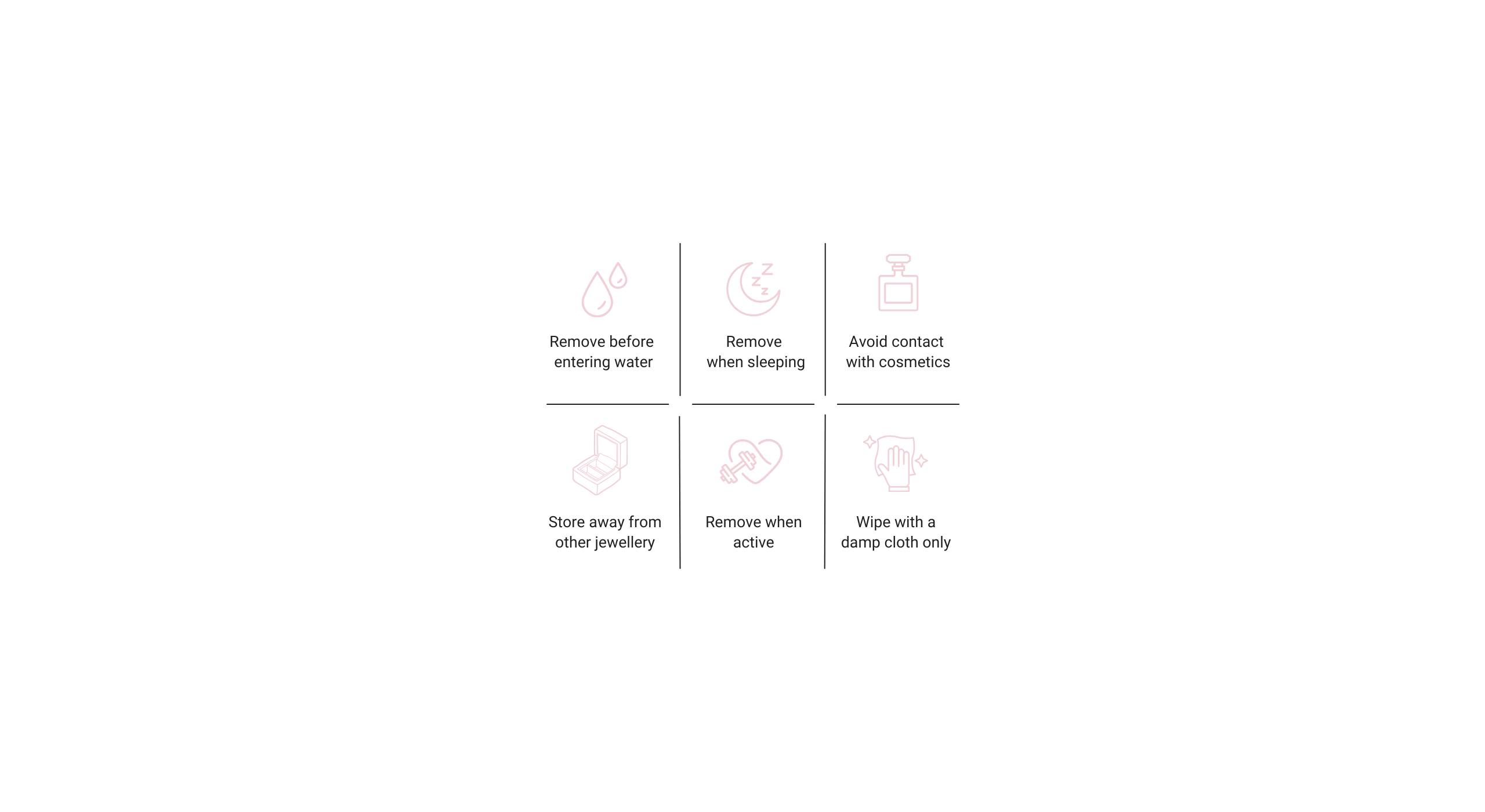 Put pearls on last: Apply makeup, hair products, sunscreen, and moisturiser before wearing your pearls to avoid contact with chemicals that can dull their lustre.