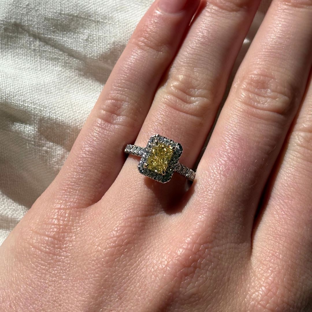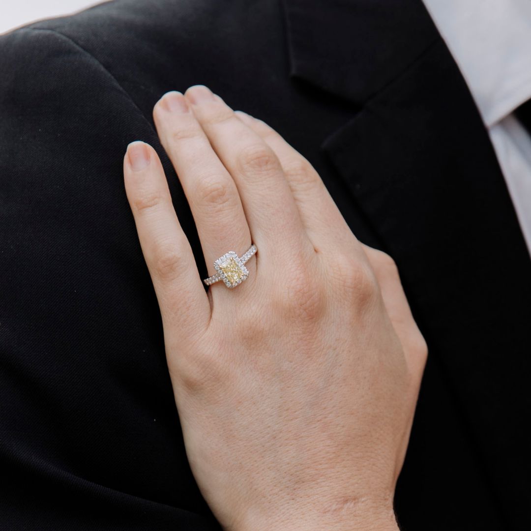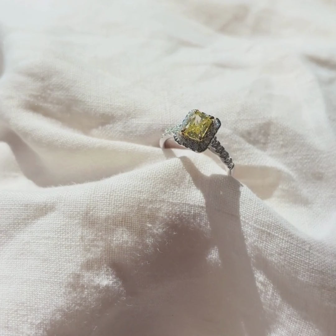 Fancy Yellow Emerald Lab-Grown Diamond Ring 023