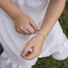 The Flora Bracelet from our Bambini Collection brings timeless charm to young girls. Featuring individually knotted pearls, available in natural white or pink, this bracelet offers a look of understated sophistication. A sterling silver extension chain and secure lobster clasp provide a comfortable, adjustable fit, allowing it to be worn and loved as she grows. Ideal as a stylish addition to her wardrobe or a meaningful gift for special occasions.