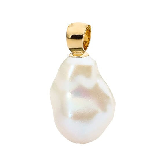 The Pebble Pendant is an exquisite accessory designed to elevate contemporary outfits, featuring a luminous Baroque freshwater pearl suspended from a 9ct yellow gold setting, effortlessly enhancing both elegant up-dos and minimalist ensembles.