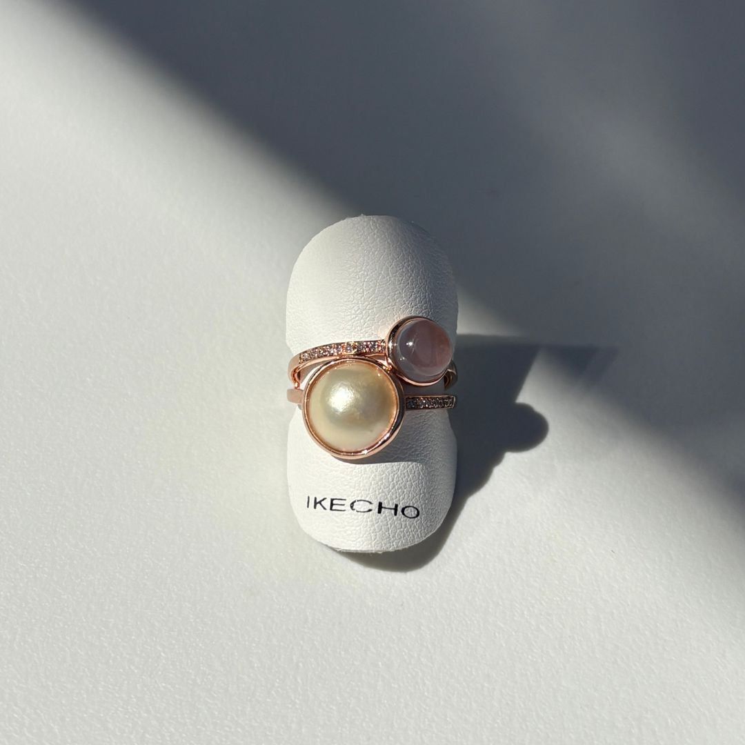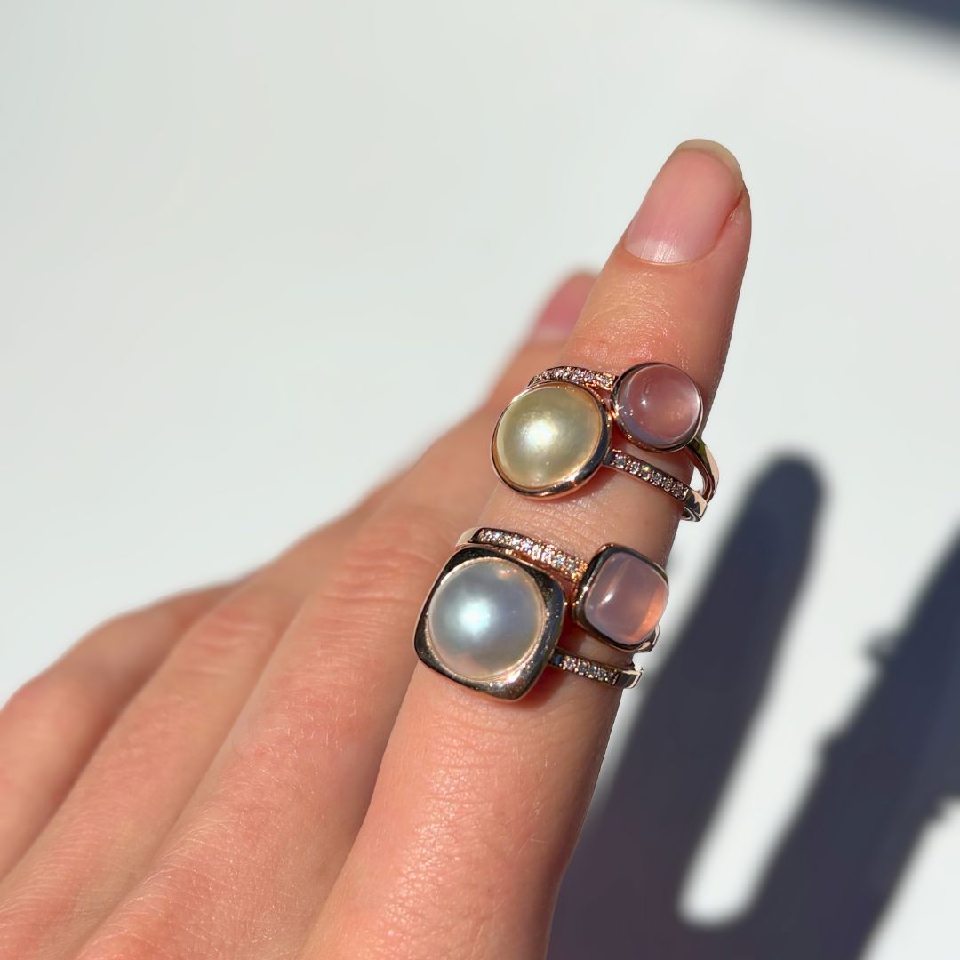 Elegant with a soft, feminine touch, the Pink Moon Ring showcases a luminous white Mabe cultured pearl with a creamy, radiant glow. Accented with a delicate rose quartz detail, it brings a subtle blush of colour that beautifully complements the pearl’s natural beauty. Timeless and versatile, this refined design is perfect for everyday wear or as a meaningful gift for someone special, designed to be cherished for years to come.