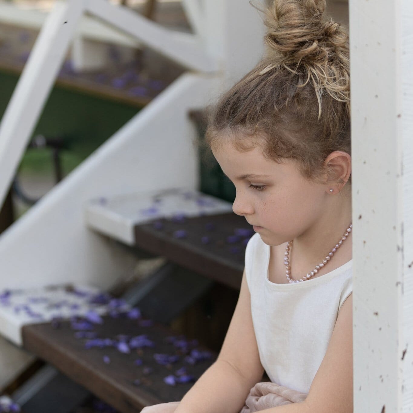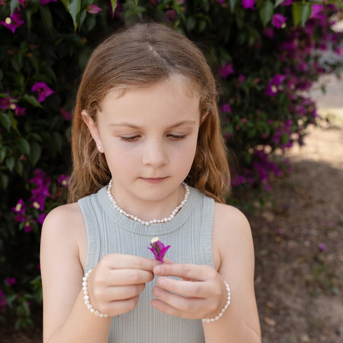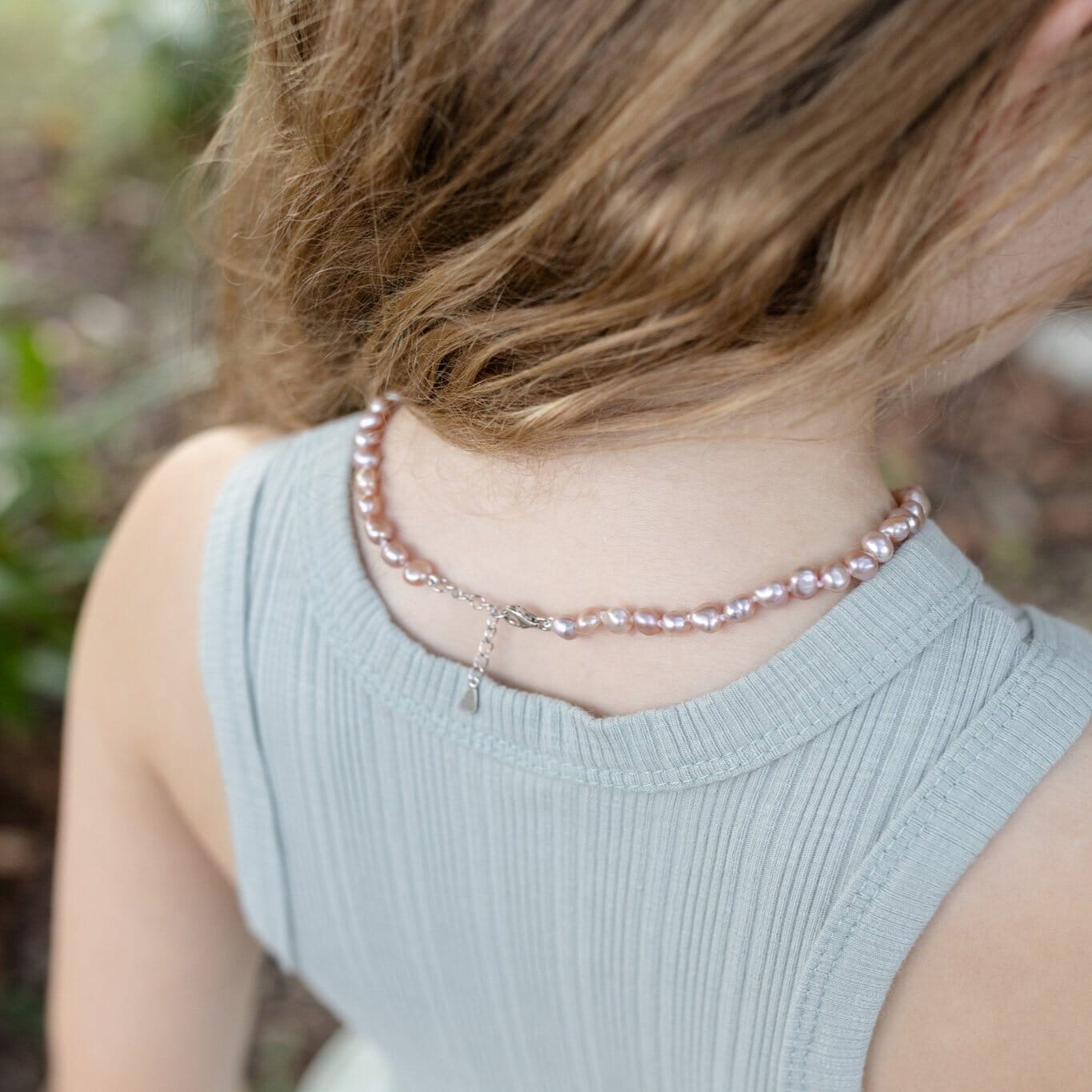 From our Bambini Collection, the Primrose Necklace is crafted with a delicate strand of petite Keshi pearls, each individually hand-knotted for durability and elegance. Offered in natural white or natural pink, the soft, lustrous shapes of the Keshi pearls make this necklace a timeless piece that pairs beautifully with the Primrose Bracelet. Designed to grow with her, the necklace features a sterling silver extension chain and a secure lobster clasp for an adjustable fit, adding a touch of sparkle to her favourite outfits.